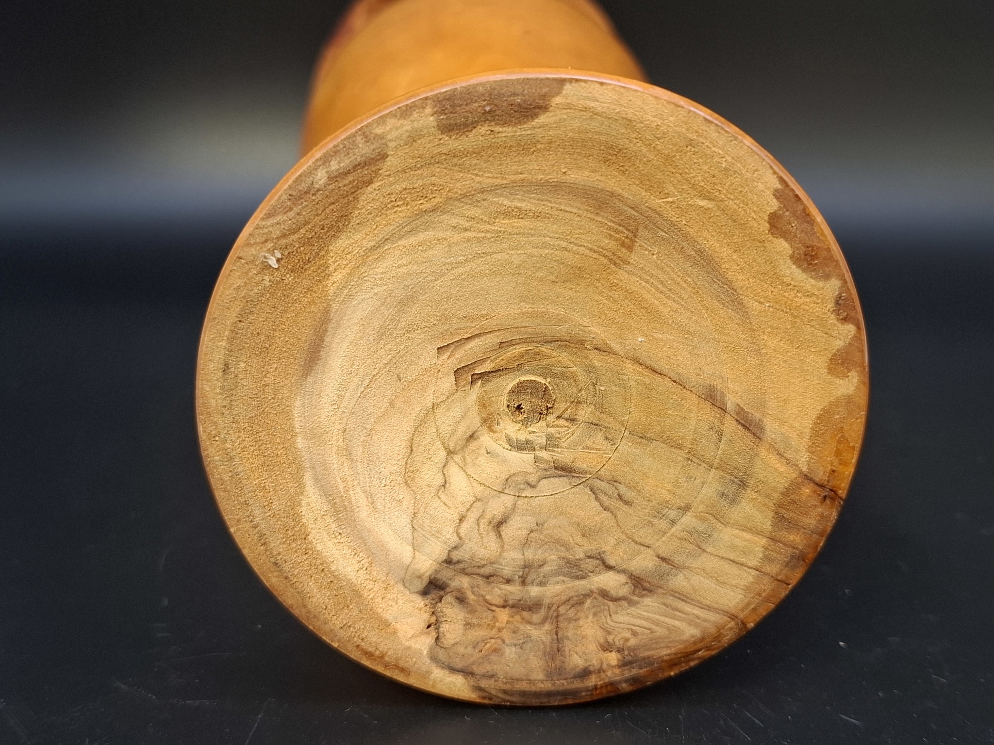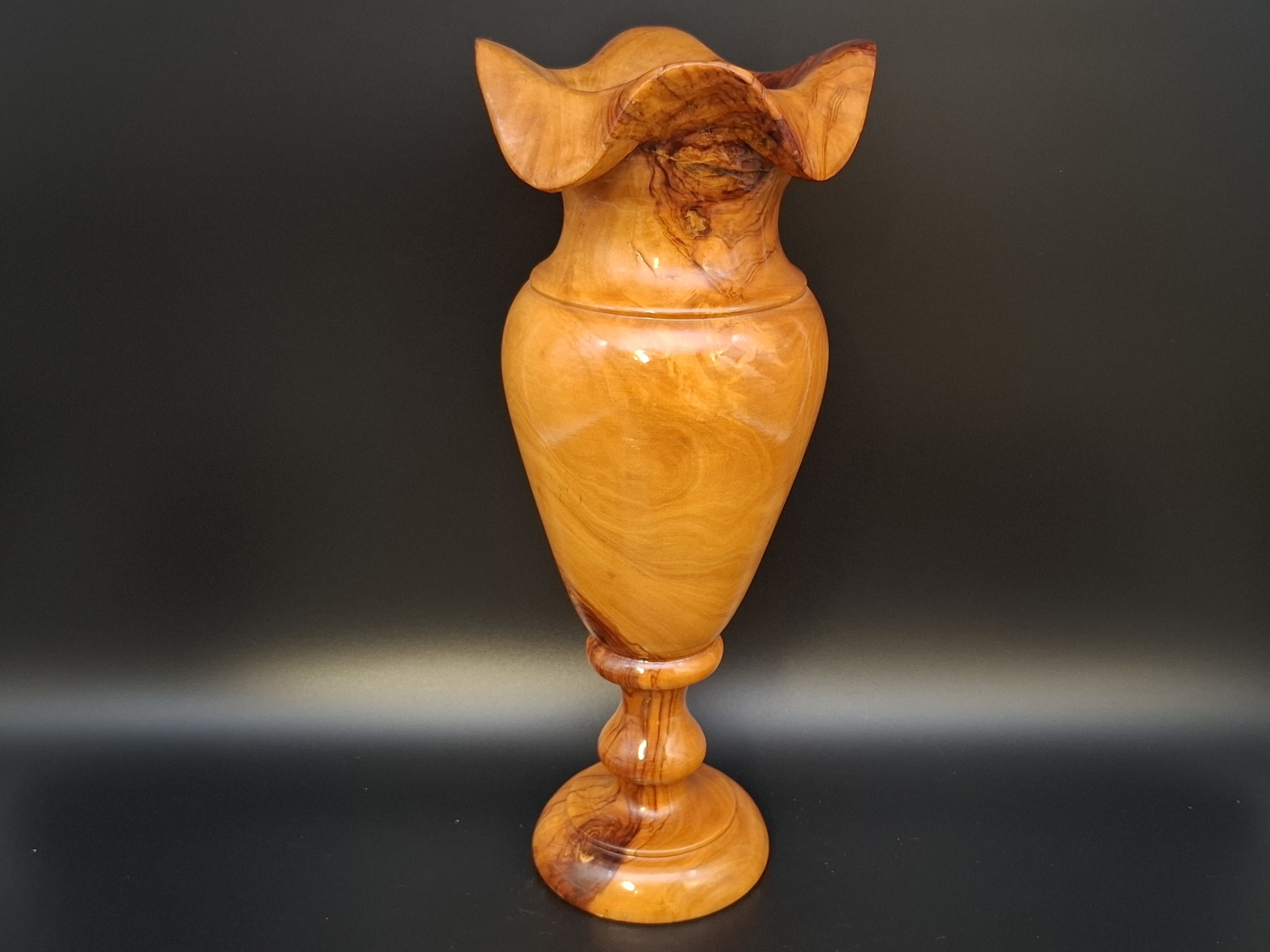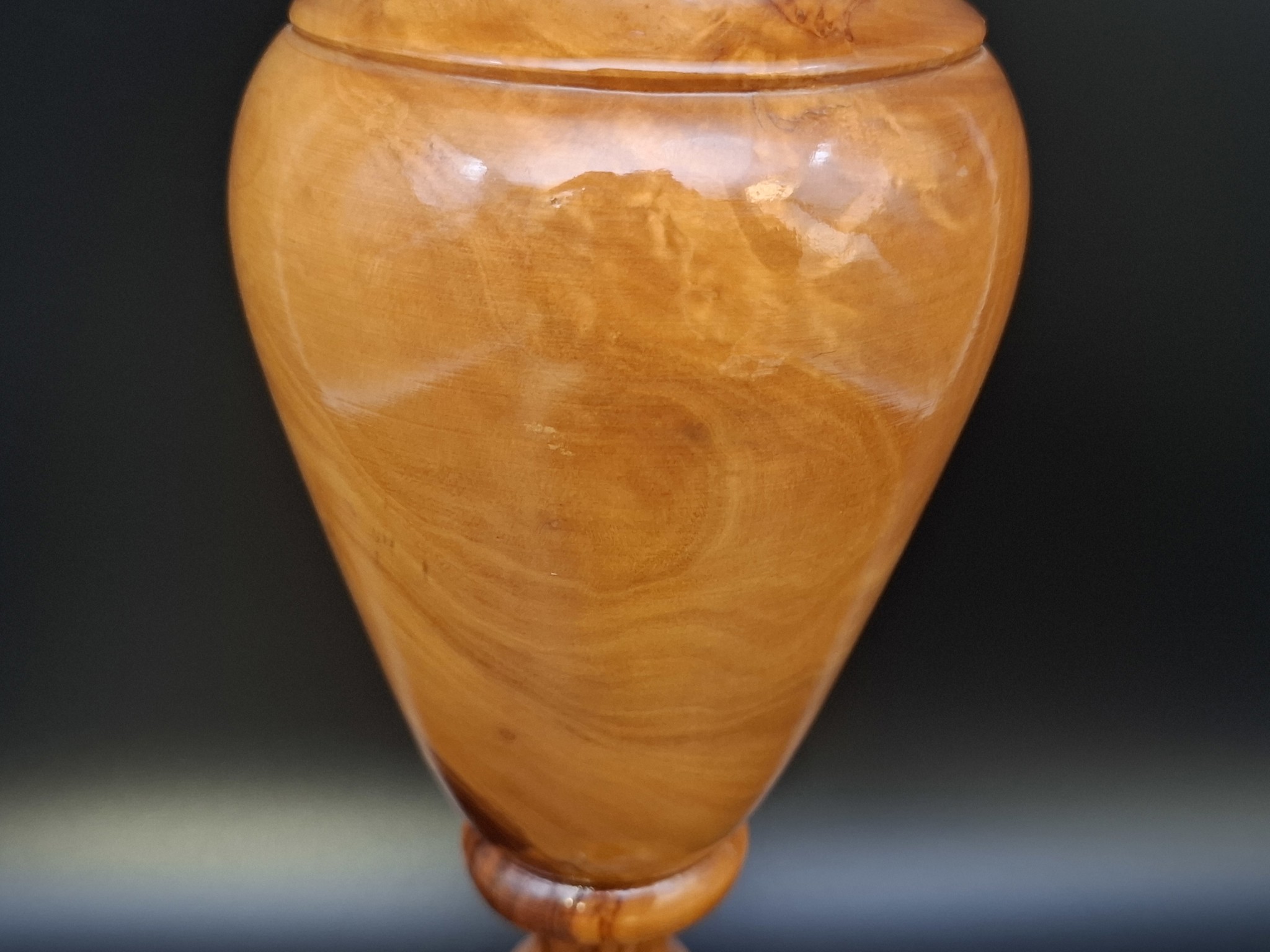 Objekt: Große Balustervase, aus einem massiven Block Holz gedrechselt.