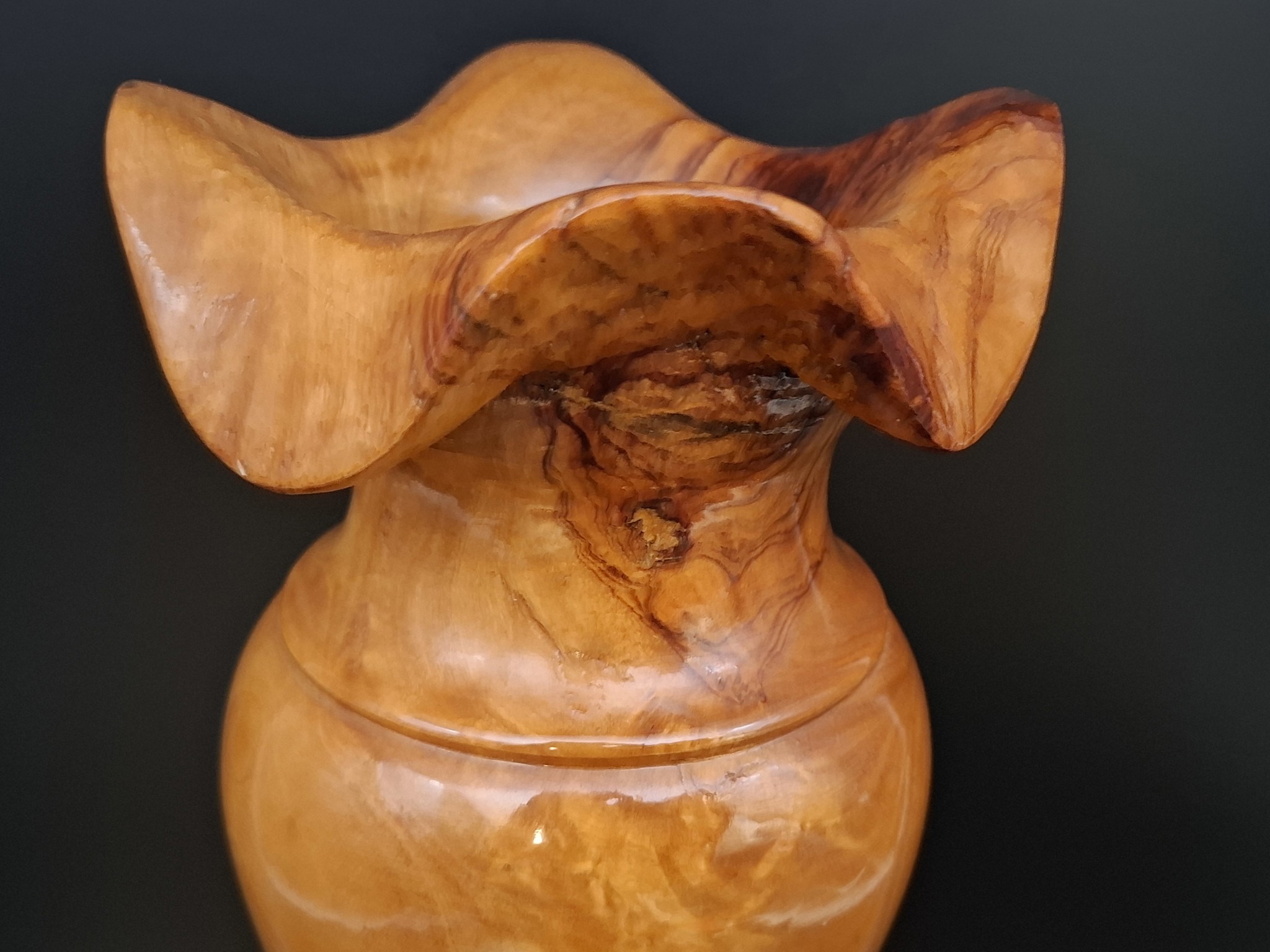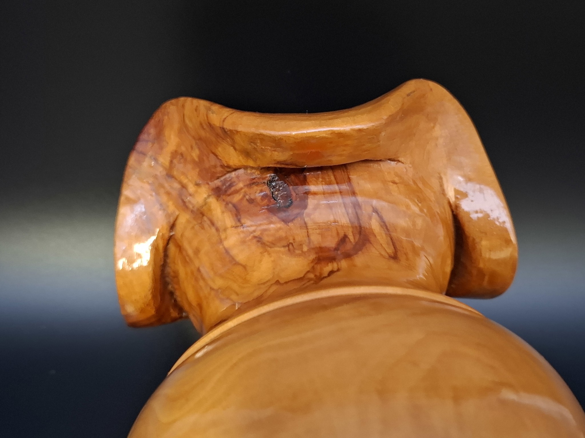 Besonderheit: Ein echtes handwerkliches Unikat. Durch die Größe und die lebendige Maserung ein toller Blickfang im Regal oder auf dem Sideboard.