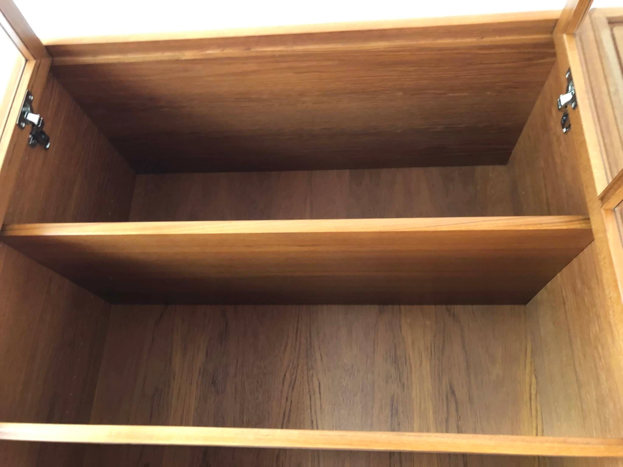 Zustand: Der Erhaltungszustand ist außergewöhnlich gepflegt. Die Fronten sind frei von Kratzern, das Glas ist unbeschädigt. Als Experte lege ich Wert auf volle Transparenz: Auf der absoluten Oberseite des Möbels (in 2,38 m Höhe) befinden sich partielle weiße Farbspritzer vom Streichen der Zimmerdecke. Dieser optische Makel ist aufgrund der Höhe vom Boden aus absolut nicht sichtbar und beeinträchtigt die makellose Frontansicht in keiner Weise. Er dient vielmehr als Beleg für meine penible Prüfung des Objekts bis in den letzten Winkel.