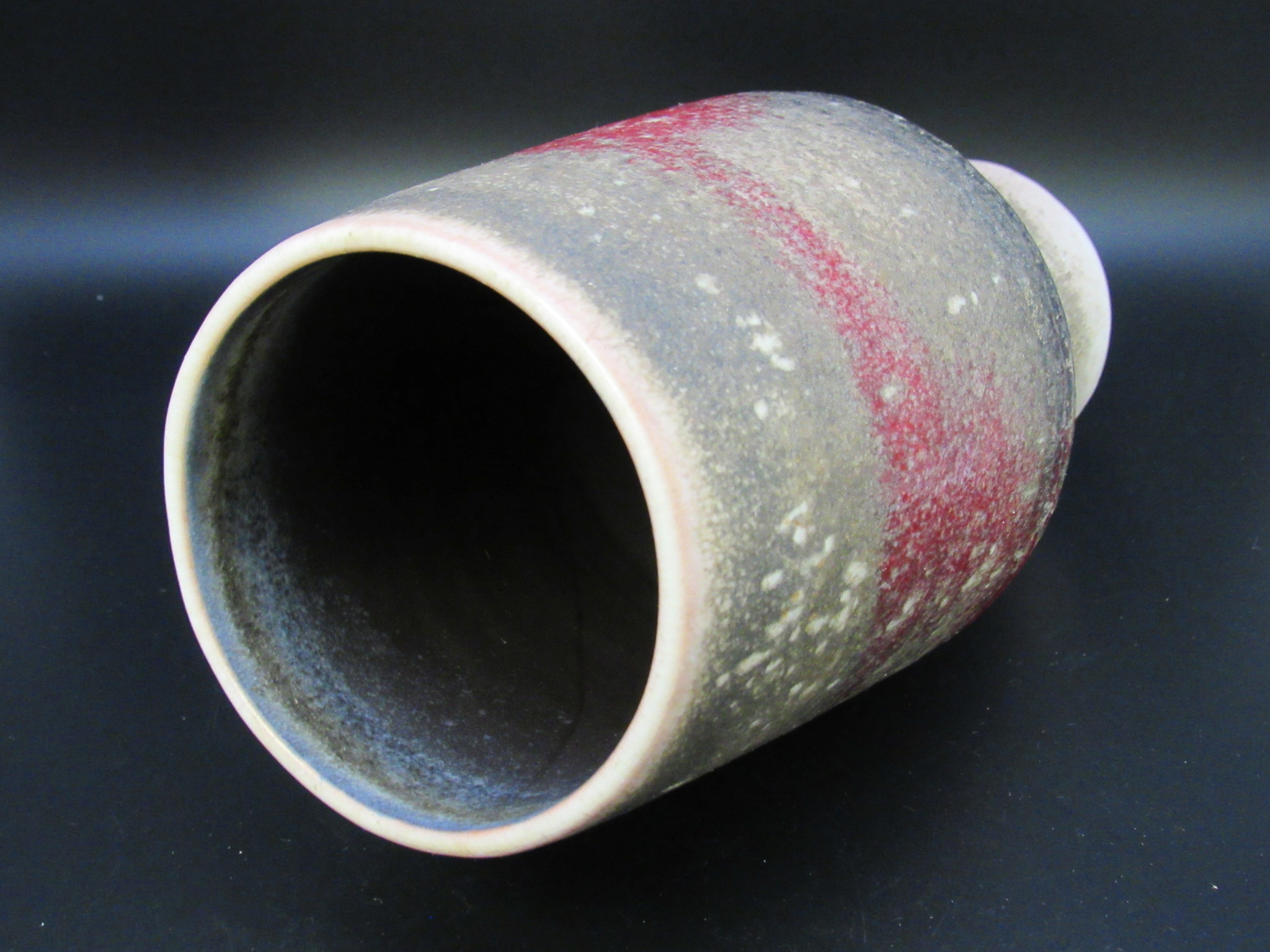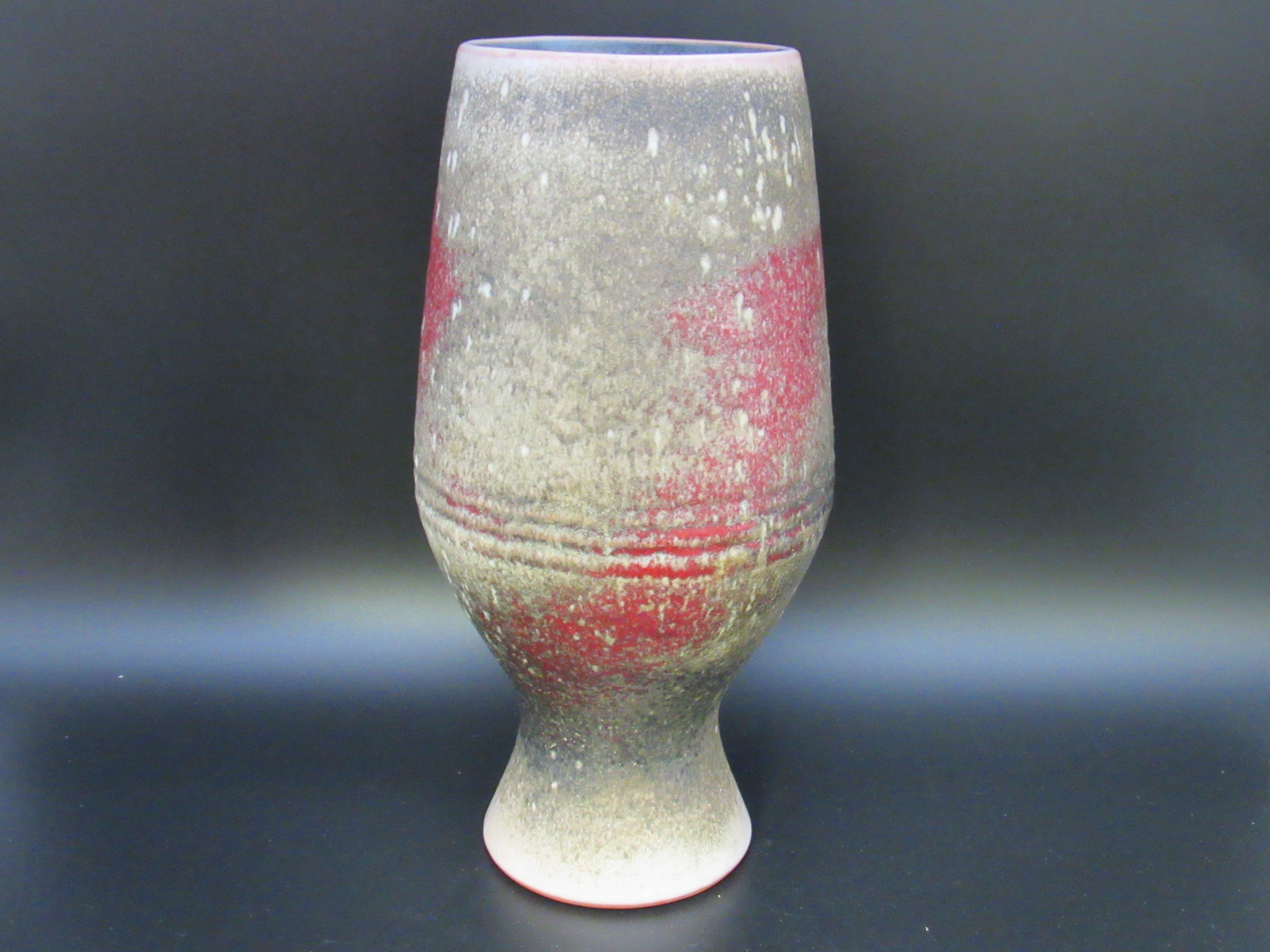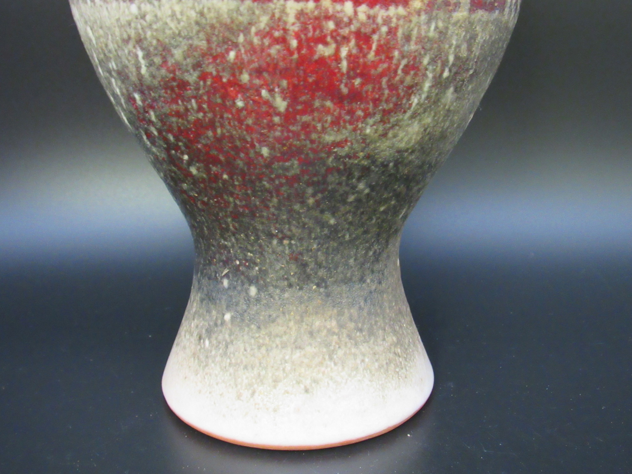Design: Erdfarbene Basis mit abstrakter, roter Lauf- und Spritzglasur. Ein tolles Beispiel für hochwertiges deutsches Keramik-Design.