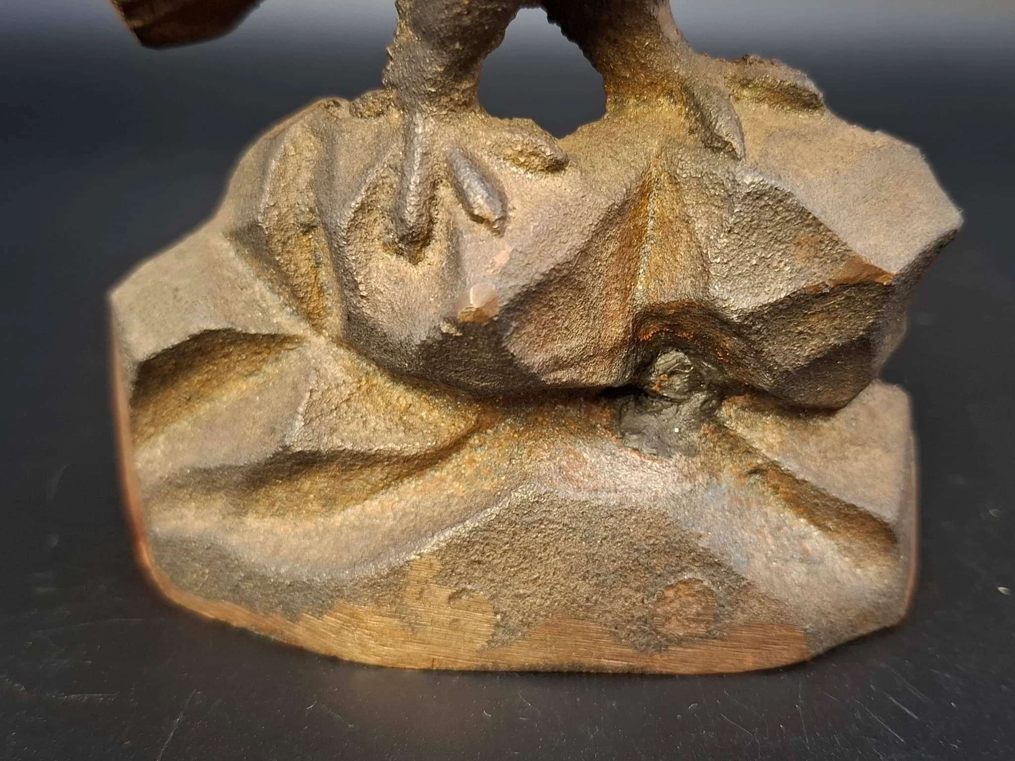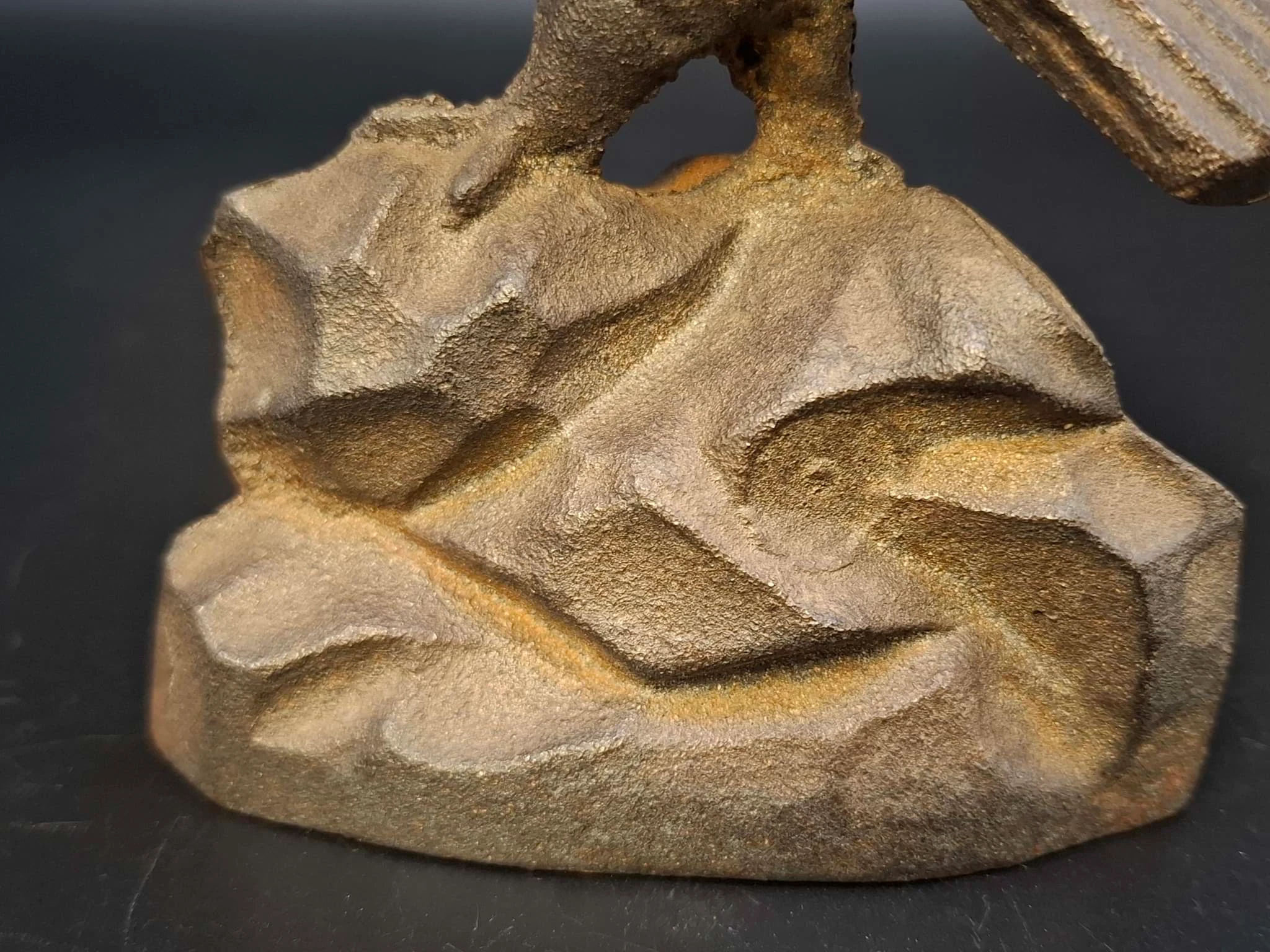 Als renommiertes Handelshaus für historische Exponate und gehobene Wohnkultur präsentieren wir Ihnen ein außergewöhnliches Stück handwerklicher Fertigkeit aus dem 20. Jahrhundert. Unsere langjährige Erfahrung im Kuratieren von Objekten aus Gusseisen erlaubt es uns, die besondere Qualität und die künstlerische Intention hinter dieser Standfigur fachgerecht einzuordnen. Es handelt sich hierbei nicht nur um ein dekoratives Element, sondern um eine kraftvolle Momentaufnahme, die die Ästhetik des vergangenen Jahrhunderts mit zeitloser Symbolik verbindet. Wir laden Sie ein, die Details dieses Objekts zu entdecken, welches durch unsere Expertenprüfung als authentisches Zeugnis seiner Epoche verifiziert wurde.