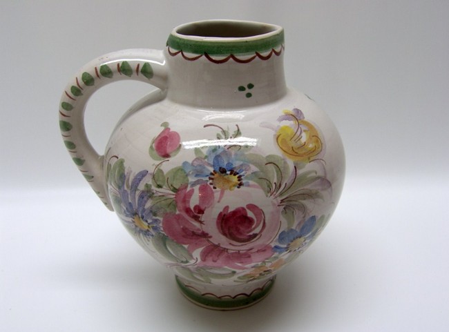 Ulmer Keramik Henkelkrug 19 cm / Nr. 212 / 4, florales Dekor