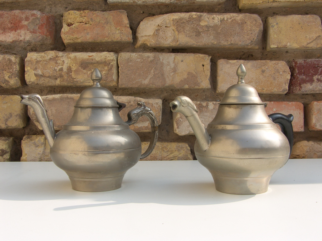 Zwei kleine Teekännchen aus massivem Messing veredelt.