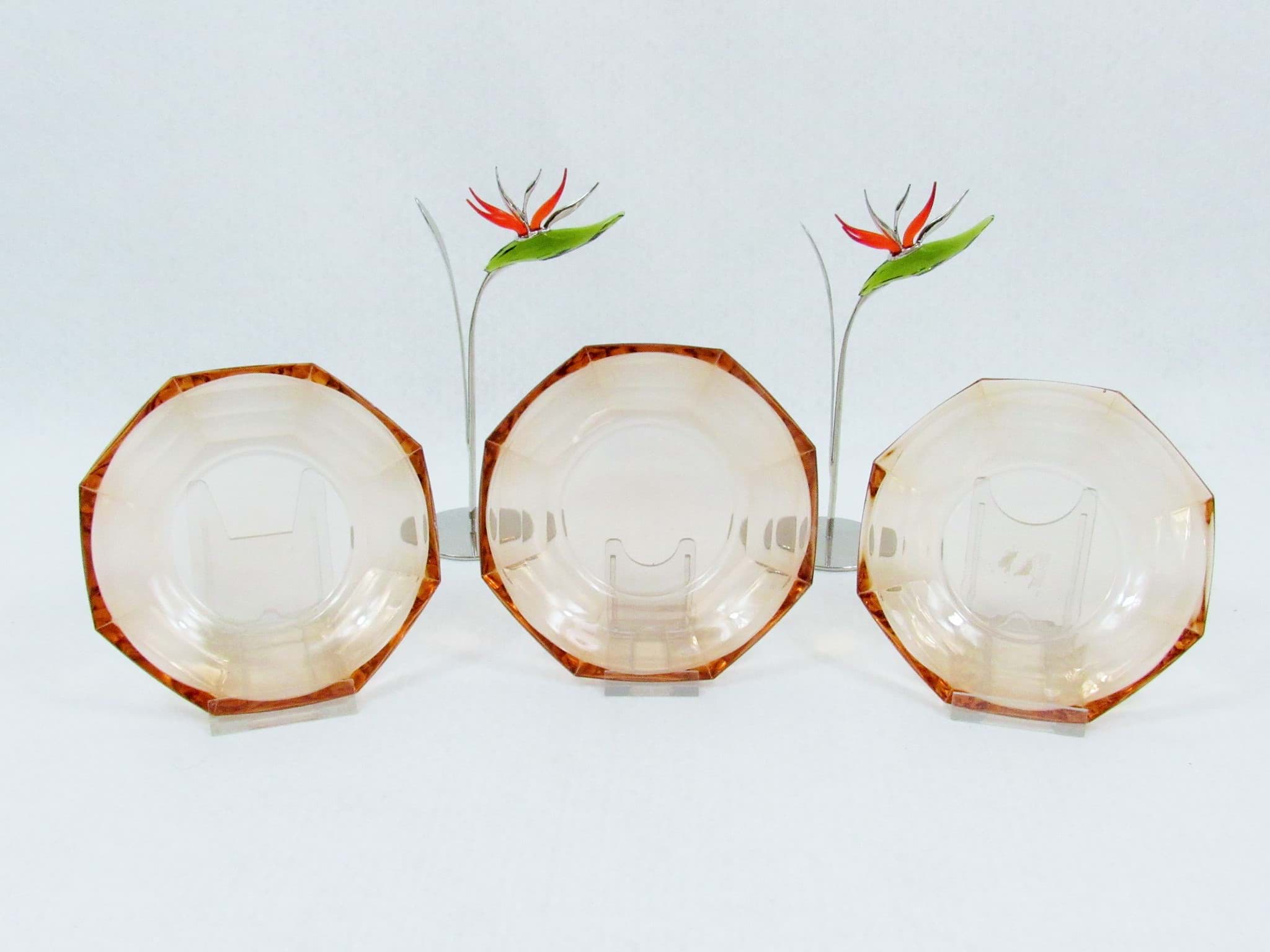 Art Déco Teller Konvolut aus Rosalinglas, Kubistisch
