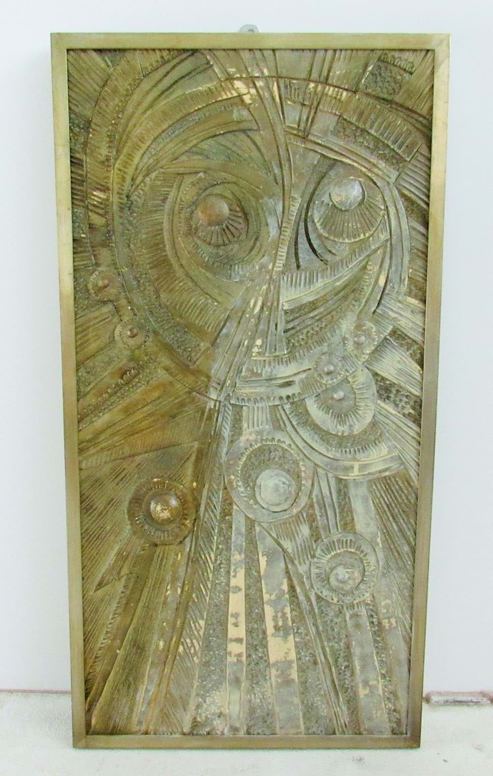 Styropor Bild von Erich Schug, Die Augen Gottes, Mittelteil Kirchenrelief, Gold gehalten
