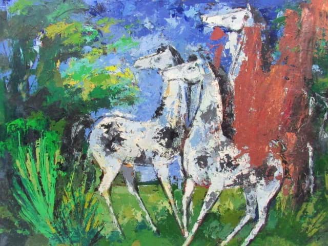 Gemälde abstrakte kubistische Komposition Pferdegruppe