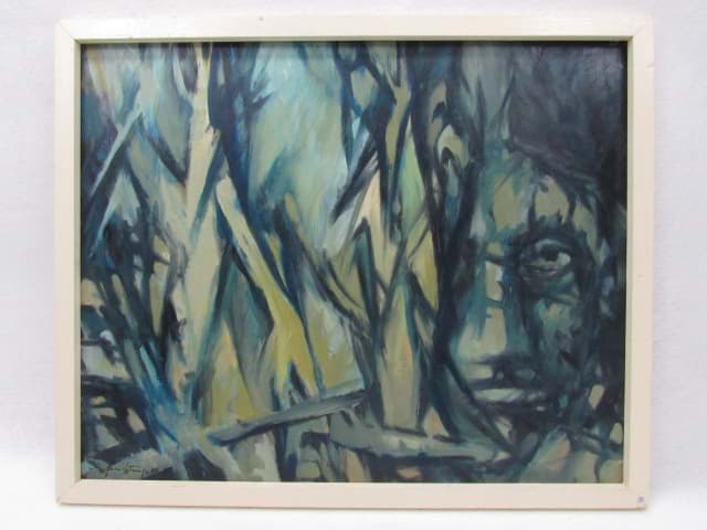 Öl-Acryl Bild "Im Dickicht", abstrakte Komposition, unleserlich signiert & datiert aus den 60er Jahren