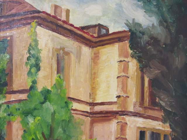 Gemälde Rainmund Weissbach Villenansicht, Öl auf Malplatte, Ölbild