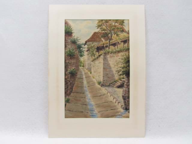 Aquarell W. Wollweber, alte Gasse mit Wasserrinne, 2. H. 20. Jh.