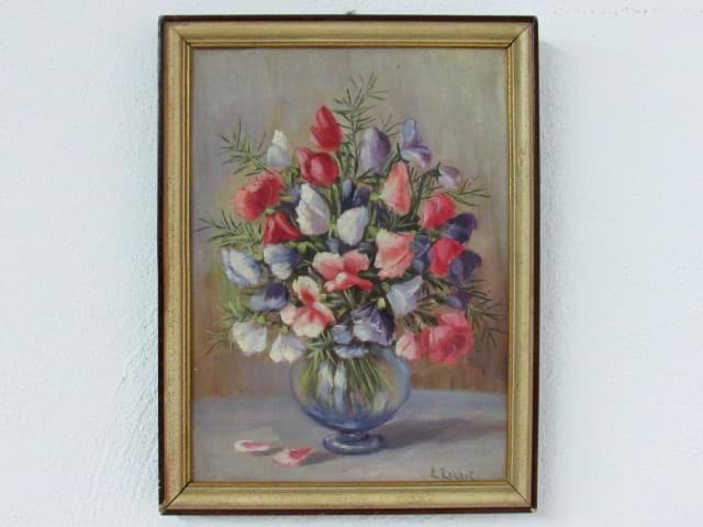 Ölbild Tafelbild Blumenstillleben, Öl/Holz, 20. Jahrhundert