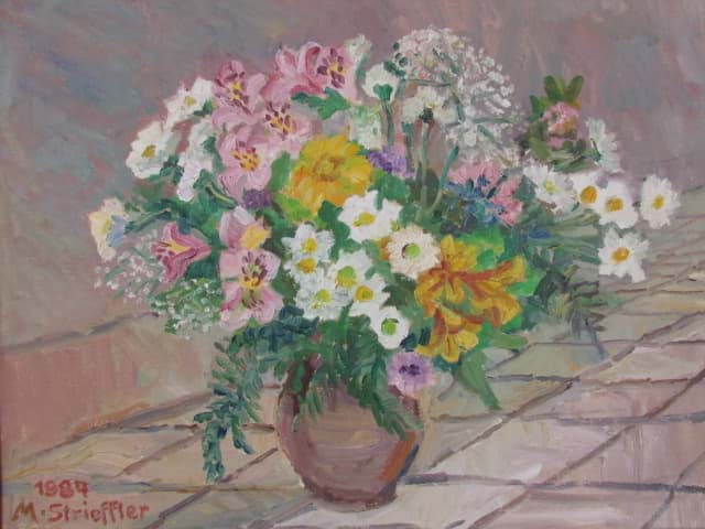 Gemälde Marie Strieffler (1917-1987), Blumenstillleben, Öl/Leinwand, Pfälzer Maler