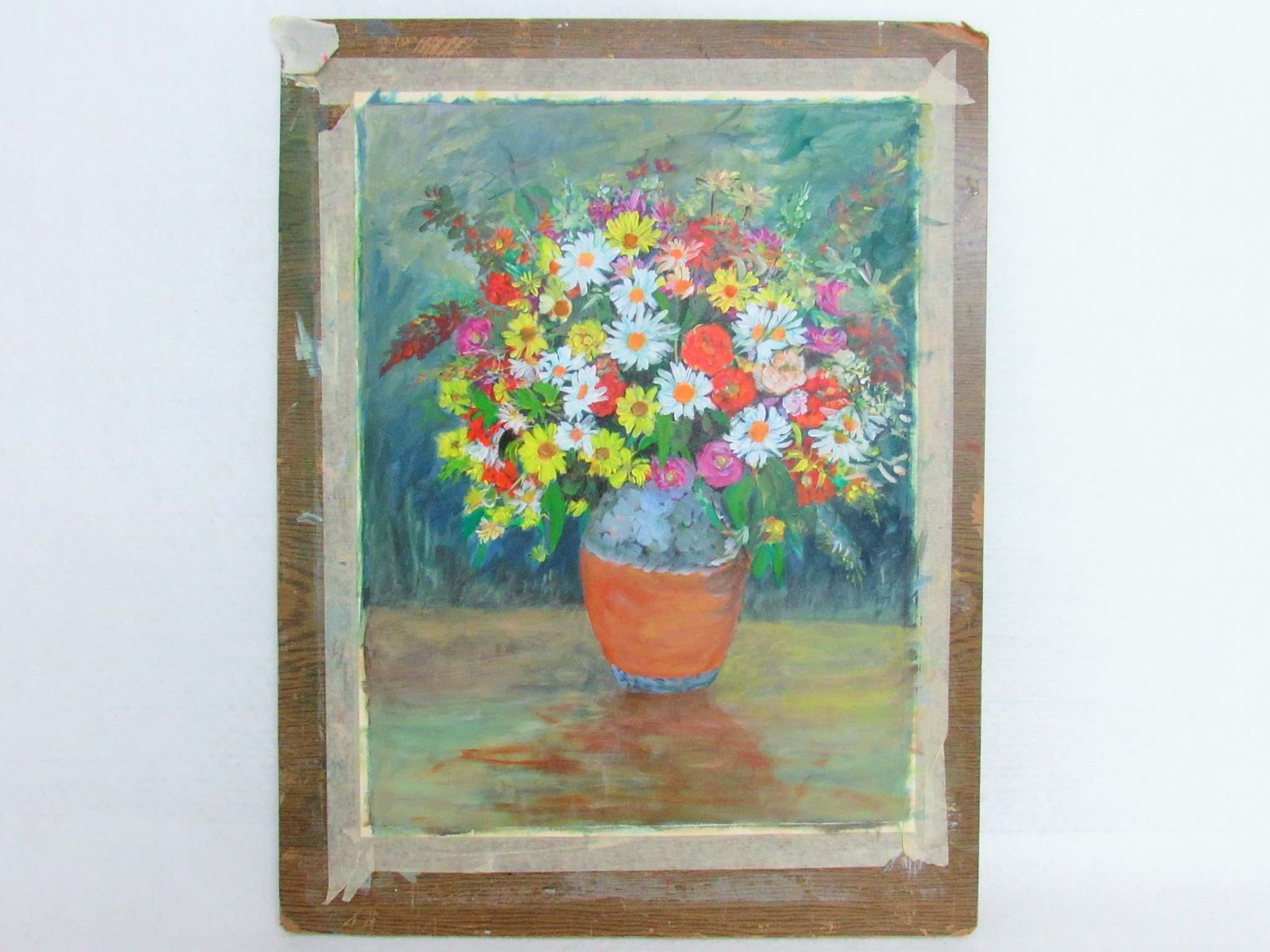 Blumenstillleben Gouache Blumenbild aus der 2. Hälfte des 20. Jahrhundert