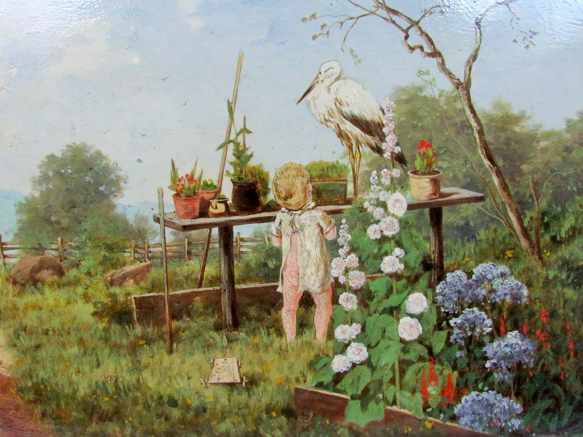 T. Tessani, 1890, Gemälde / Ölbild Impressionismus, Landschaft mit liebevoller Knaben Szene - Eine Frage !, Öl/Holz
