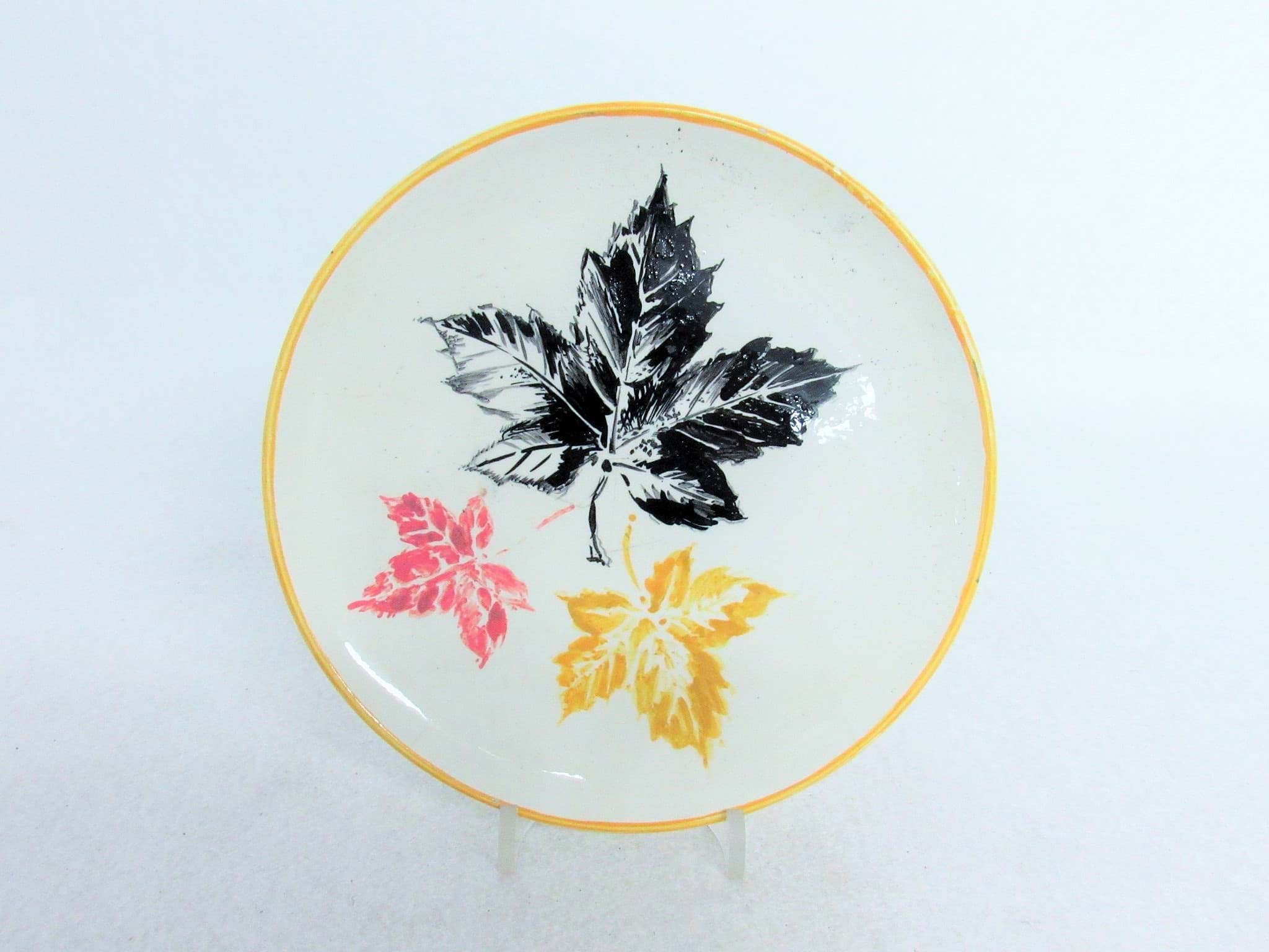 Bemalter Künstler Teller, Walter Gräber (1914-2001), Blätter Motiv, rückseitig signiert