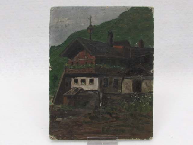 Ölgemälde einer Berghütte von Walter Gräber Pfälzer Maler & Verleger, 20. Jahrhundert, Öl/Karton