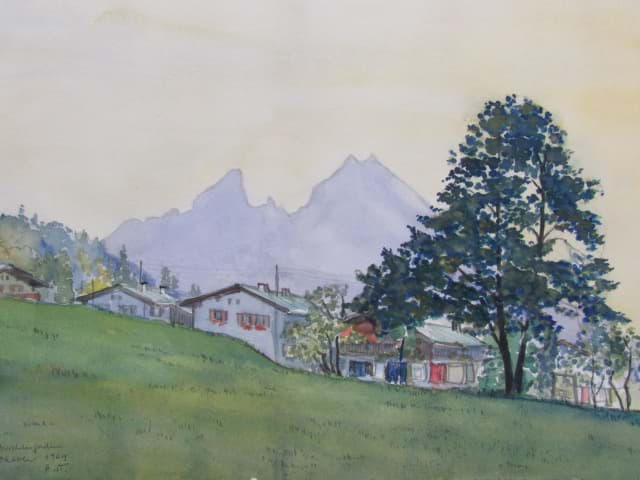 Aquarell Zeichnung Alpenlandschaft Berchtesgaden, monogrammiert & datiert