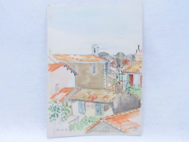 Bild von Häusern und einer Kapelle in Sausset les Pins, Aquarell Zeichnung, monogrammiert H. ST., datiert 1956