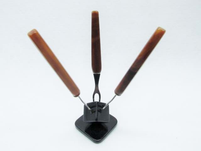 Art Deco Cocktailspieße mit Ständer, Bernstein Optik