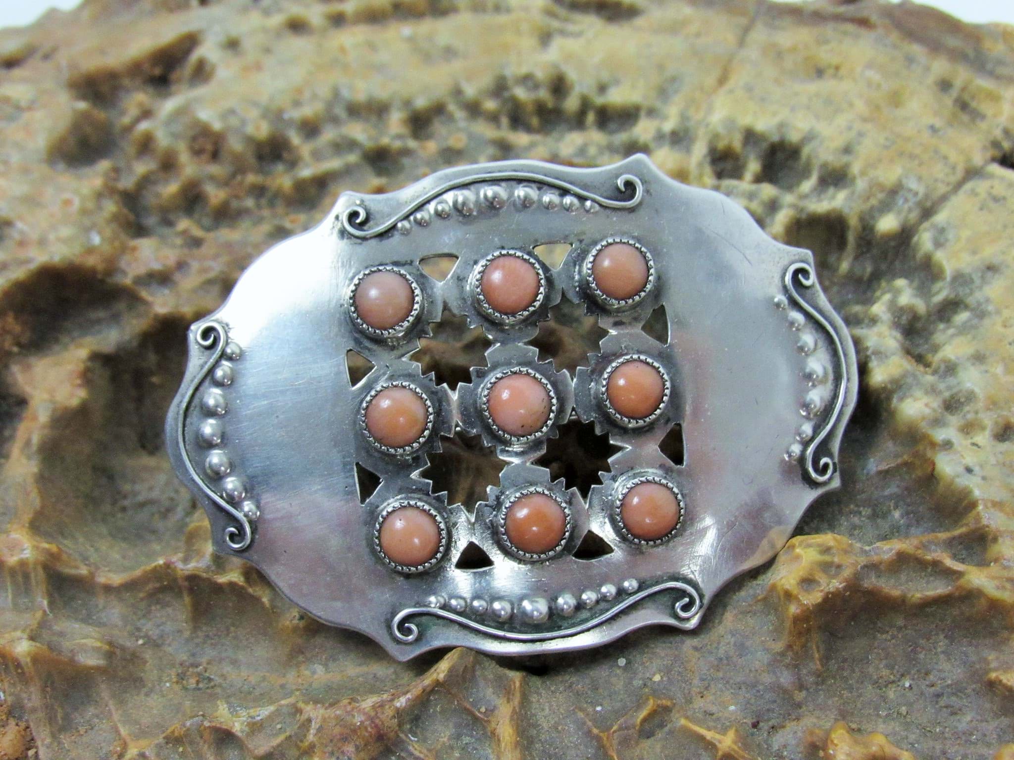 Antike Silber Brosche mit Korallen Besatz um 1920/40, wohl Skandinavien